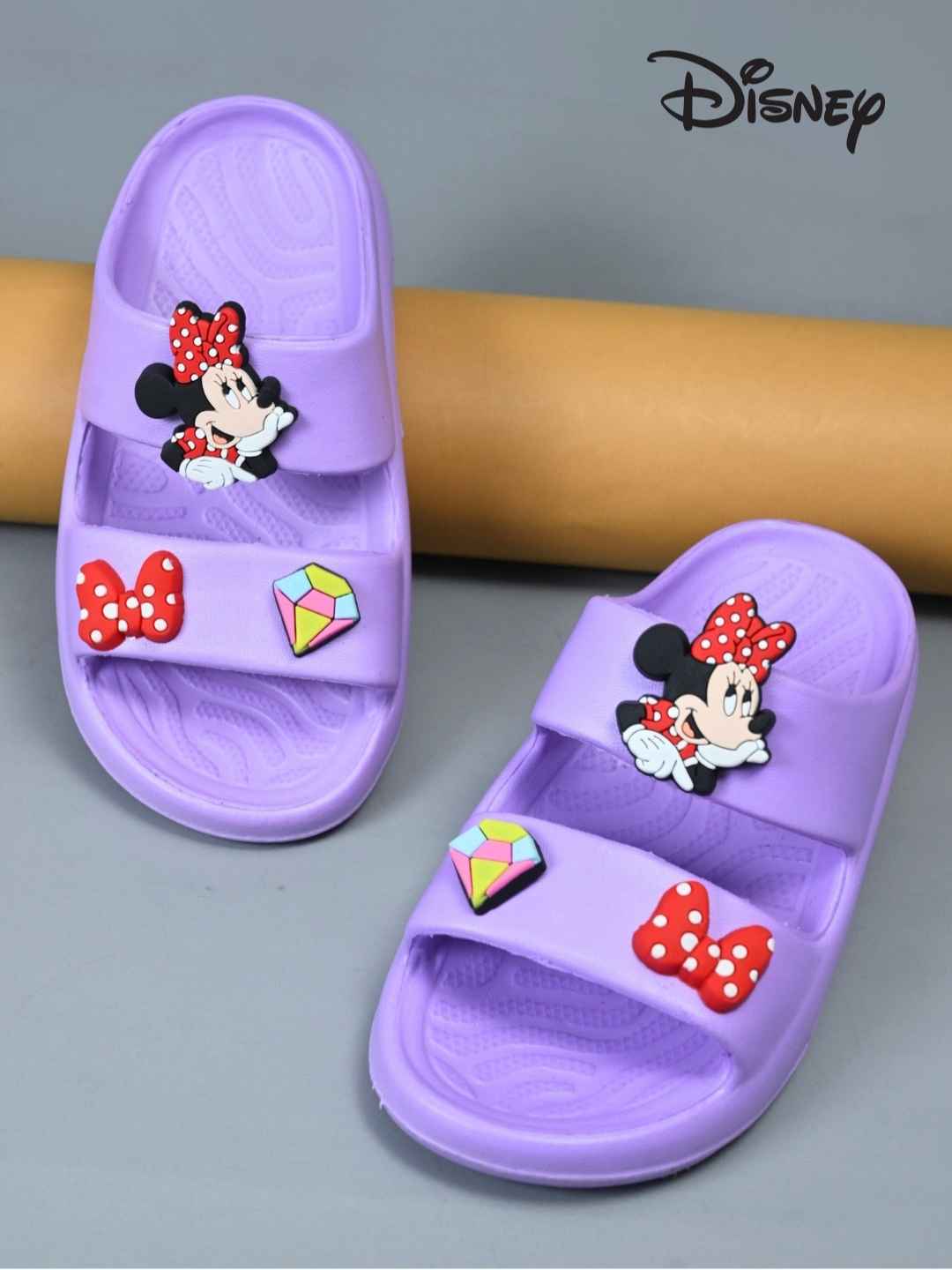 Little girl sparkle with every step in these adorable Yellow Bee Girls’ Minnie Mouse Slides! Designed in a lovely purple hue, these EVA slides combine comfort with charm, featuring Minnie Mouse’s iconic face, her signature red bow, and a vibrant gem accent. Whether it’s for playtime, a walk in the park, or a Disney-themed day out, these lightweight slides make every outing feel magical.