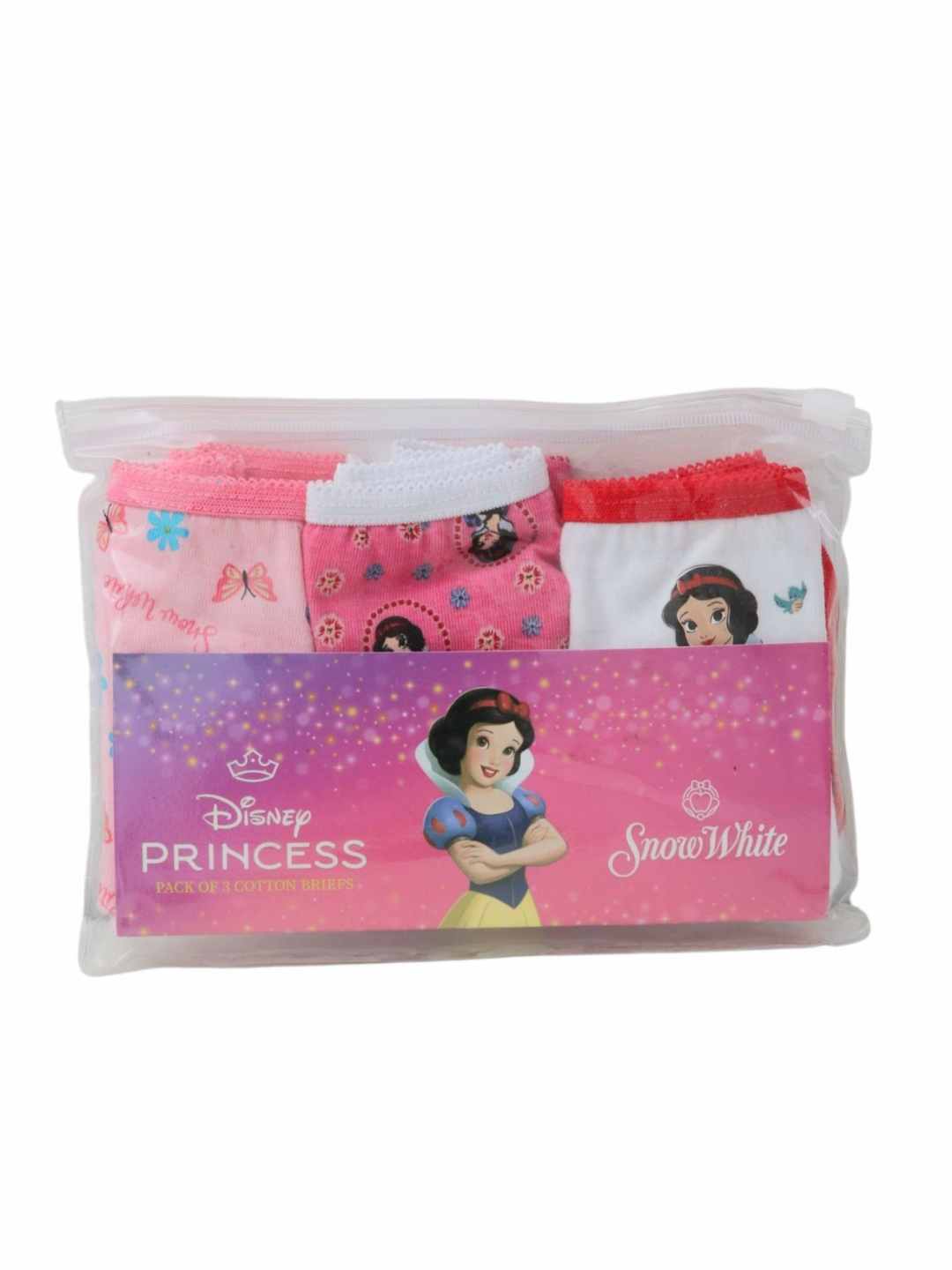 Easy‑care value:* Machine‑washable fabric in a practical *3‑pack*—built for frequent wear and quick laundry turn arounds. Bring fairytale fun to everyday comfort. This Disney Princess *Snow White* underwear set is made from soft, breathable *100% cotton* with a gentle no‑pinch waistband. The mid‑rise cut stays put, the easy pull‑on style supports bathroom independence, and the 3‑pack of cheerful pink & white Snow White prints keeps her excited to get dressed all week.