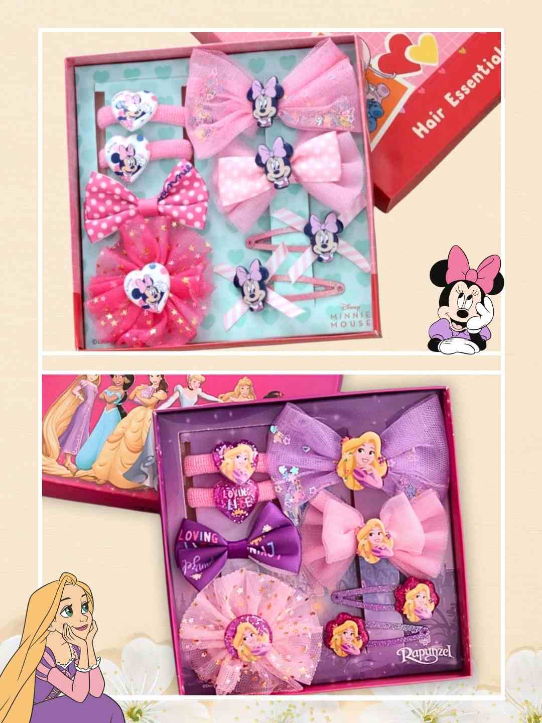 Make every hairstyle magical with the Disney by Yellow Bee Minnie Mouse & Rapunzel Hair Accessory Gift Set for Girls. This charming combo includes two themed packs filled with bows, clips, and hair ties featuring everyone's favorite fashion icons—Minnie Mouse and Princess Rapunzel. With vibrant pinks and purples, sparkling details, and character prints, it’s a dream addition to any little girl’s hair accessory collection. Whether it's a birthday, party, or everyday glam, this set brings fairytale flair to every look.