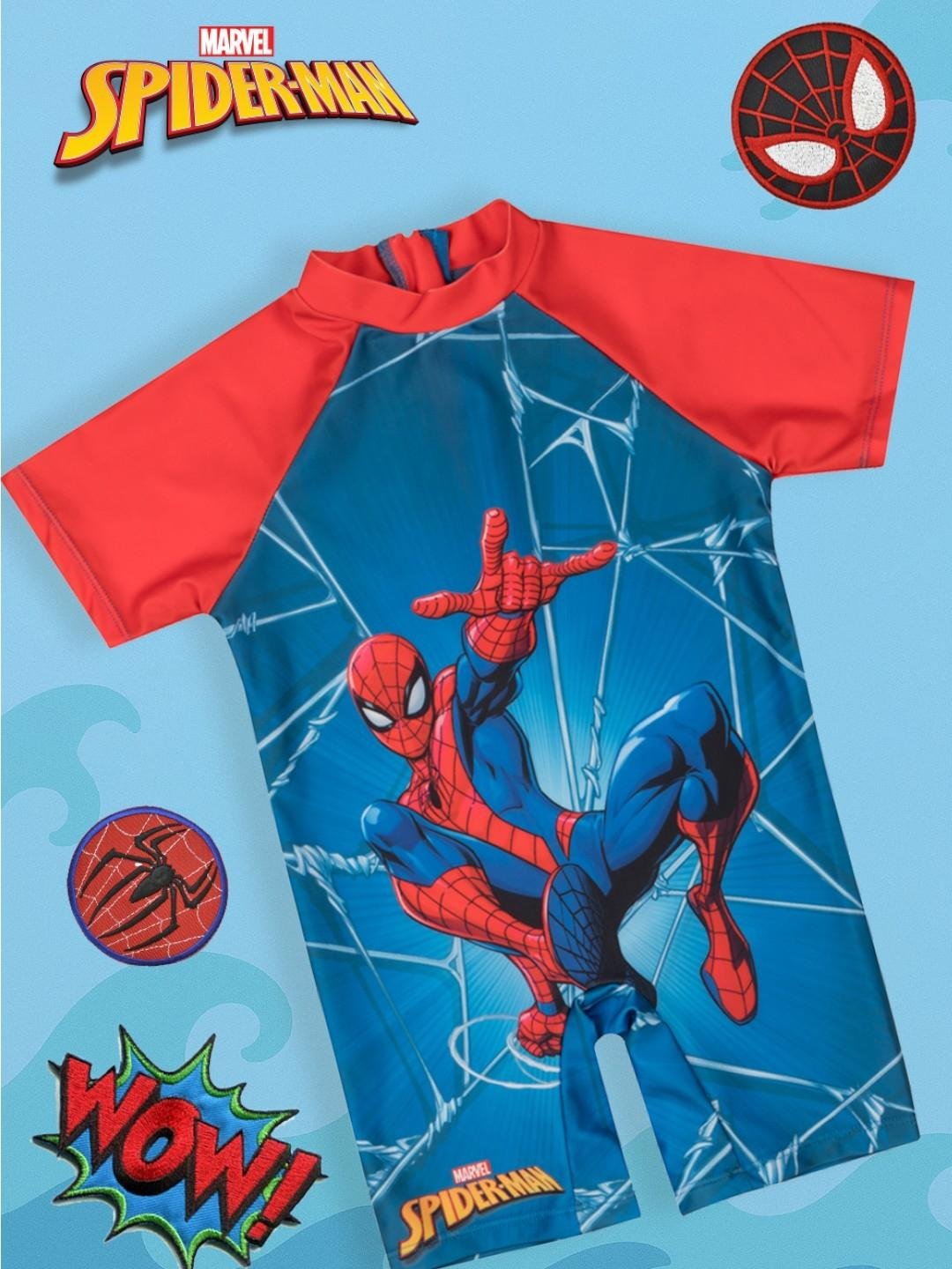 Yellow Bee Boys' Marvel Spider-Man Swimsuit with Web Print– Blue
