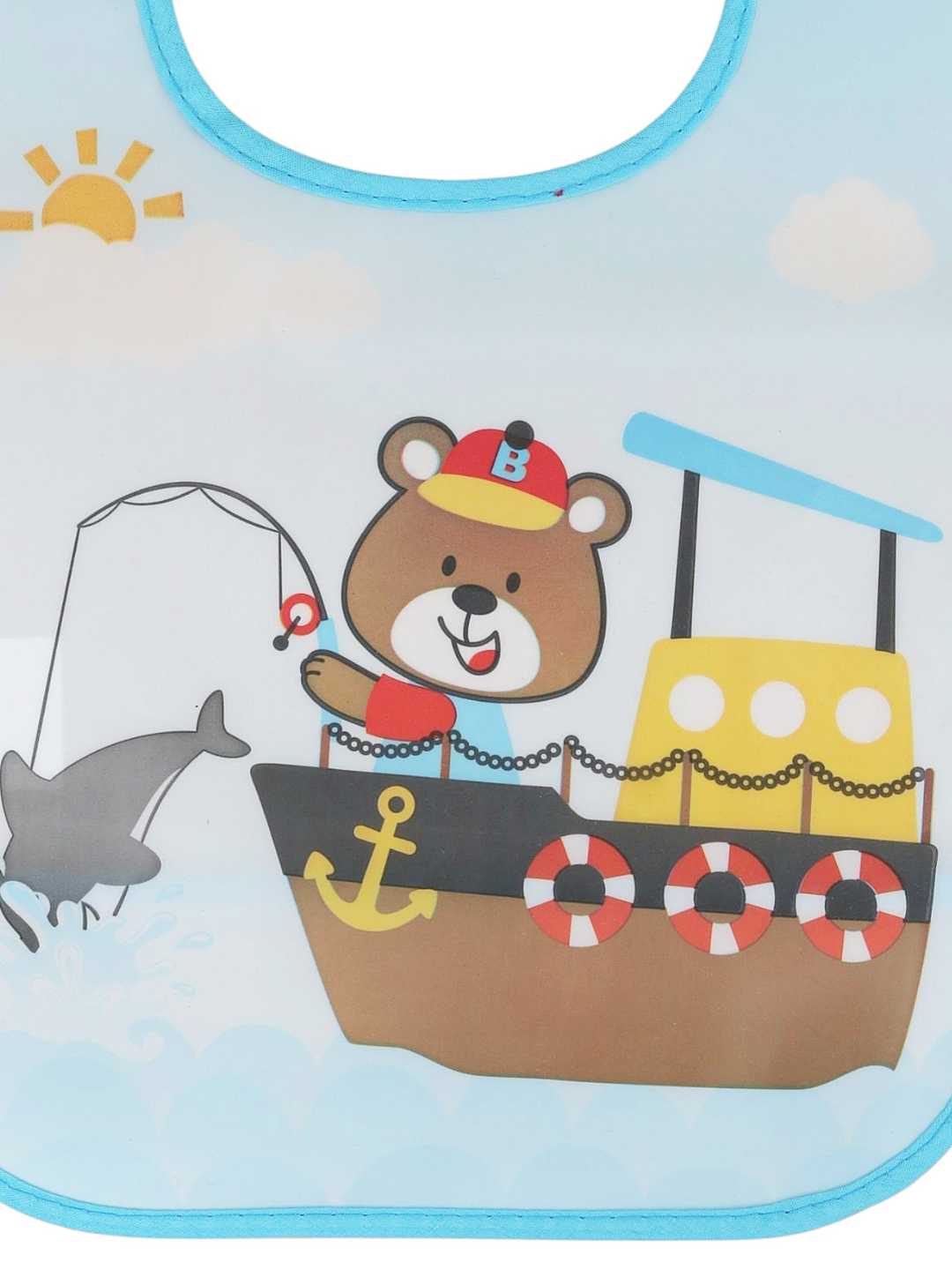 Set sail for a mess-free mealtime with the Yellow Bee Waterproof Bib – Fisher Bear & Shark Adventure Theme. Designed with a cute bear steering his boat and a friendly shark swimming below, this bib makes feeding time both fun and fuss-free. Its waterproof finish shields clothes from spills, dribbles, and splashes, so your baby can enjoy every bite without worry.